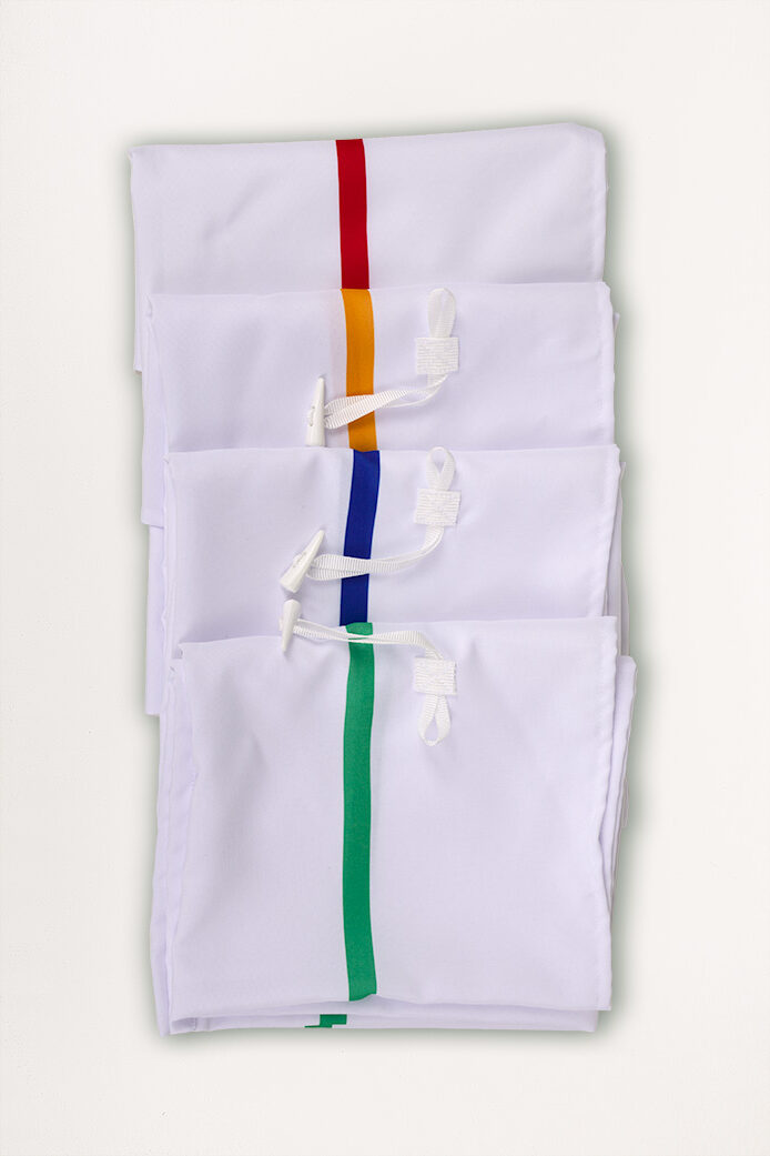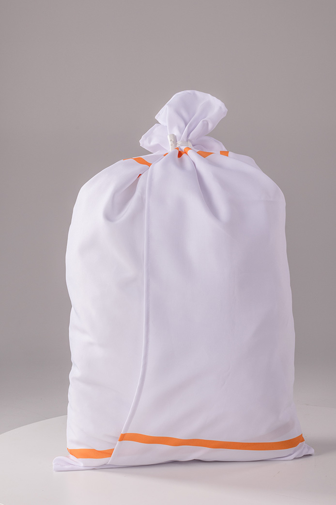 Il sacco si apre da solo durante il bucato, dopo aver rilasciato la chiusura. Questo design contribuisce a garantire la sicurezza degli addetti alla lavanderia, eliminando il contatto diretto con la biancheria sporca. Il sacco viene lavato insieme agli altri articoli.
