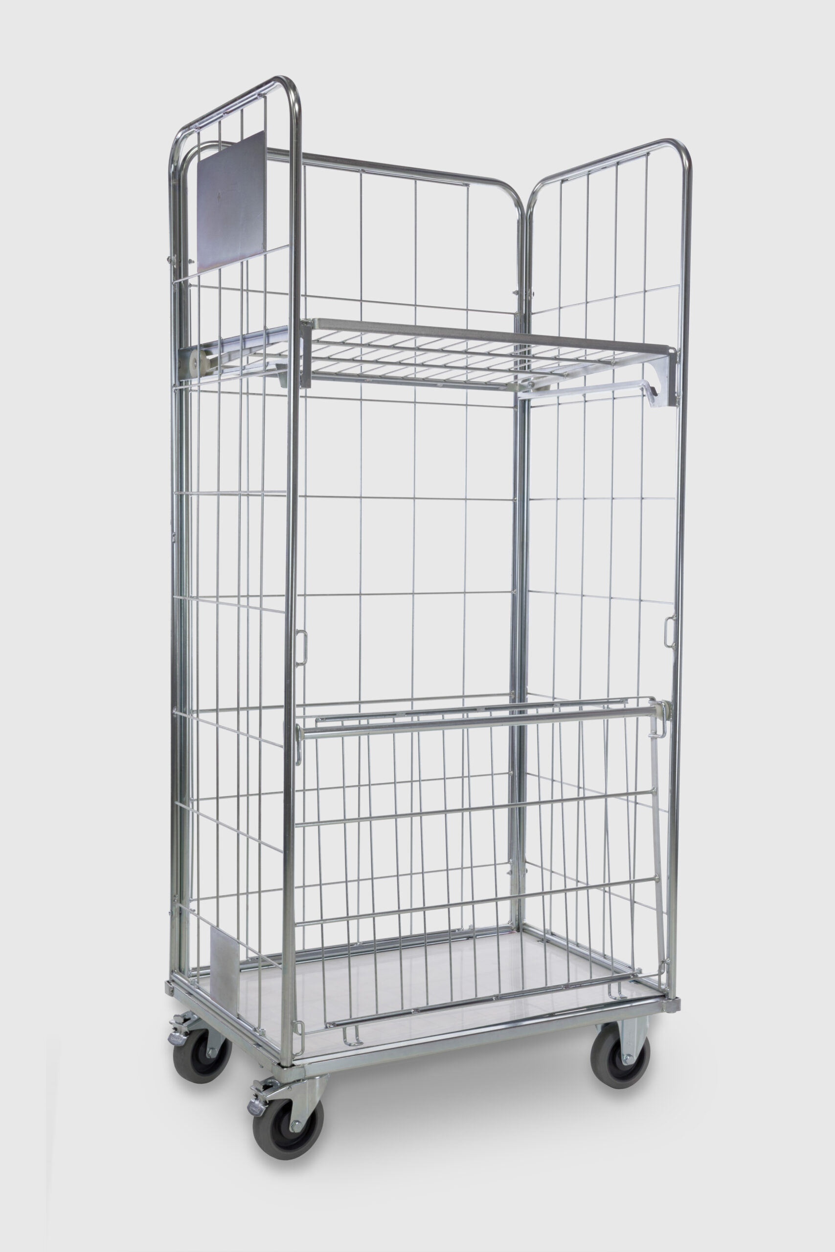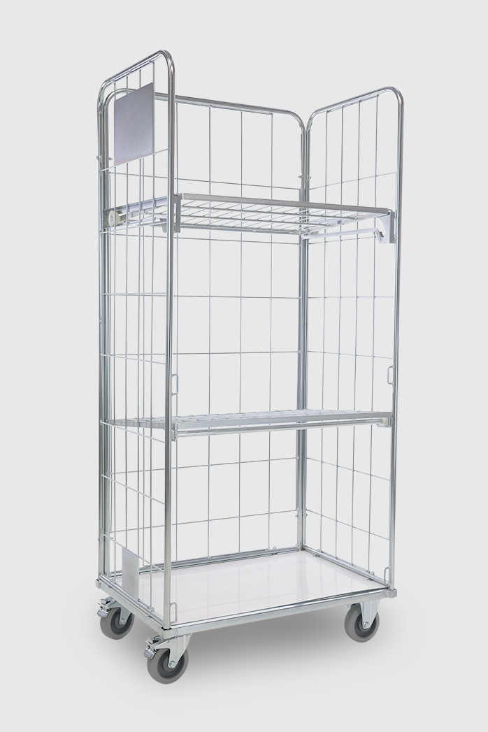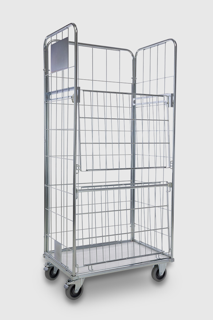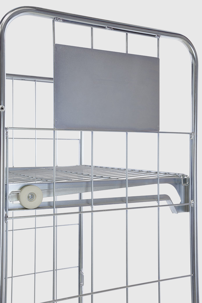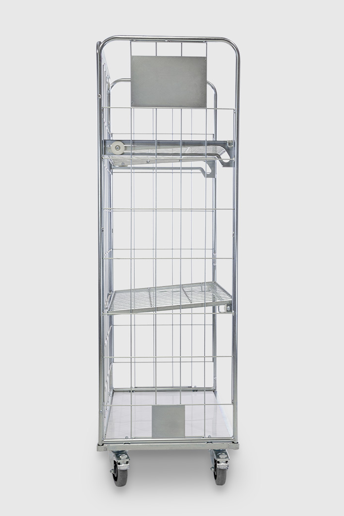 I ripiani non rimovibili sono girevoli e possono essere utilizzati come pareti frontali del container. Di conseguenza, il container è completamente chiuso su tutti quattro i lati.
