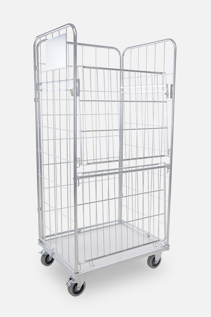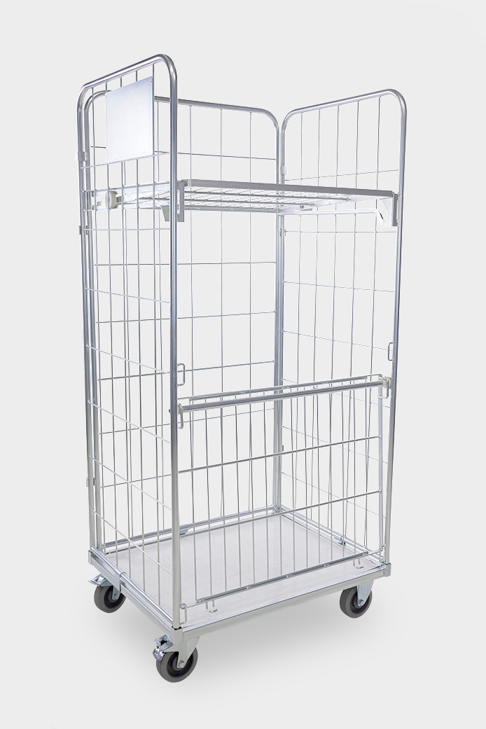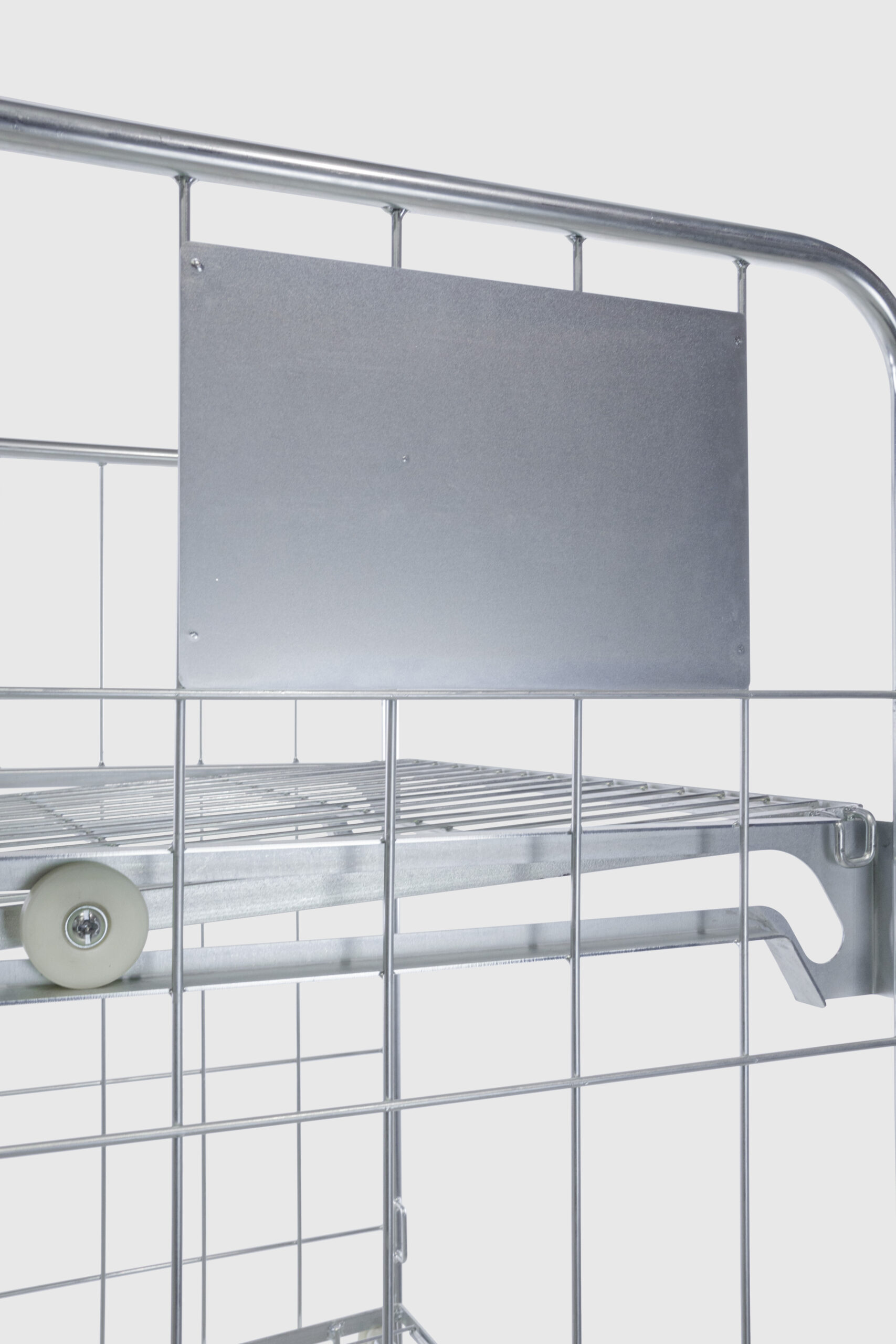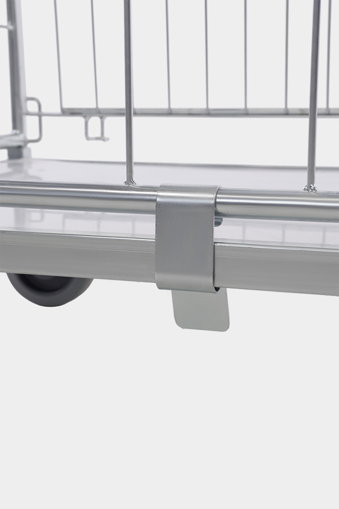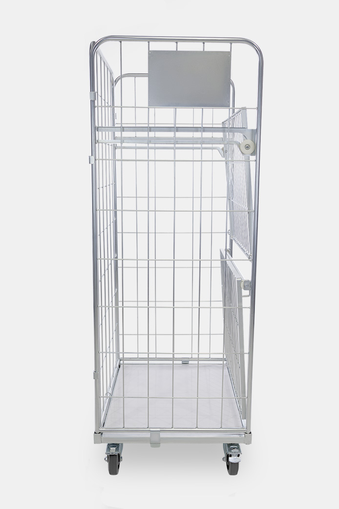 I ripiani non rimovibili sono girevoli e possono essere utilizzati come pareti frontali del container. Di conseguenza, il container è completamente chiuso su tutti quattro i lati.