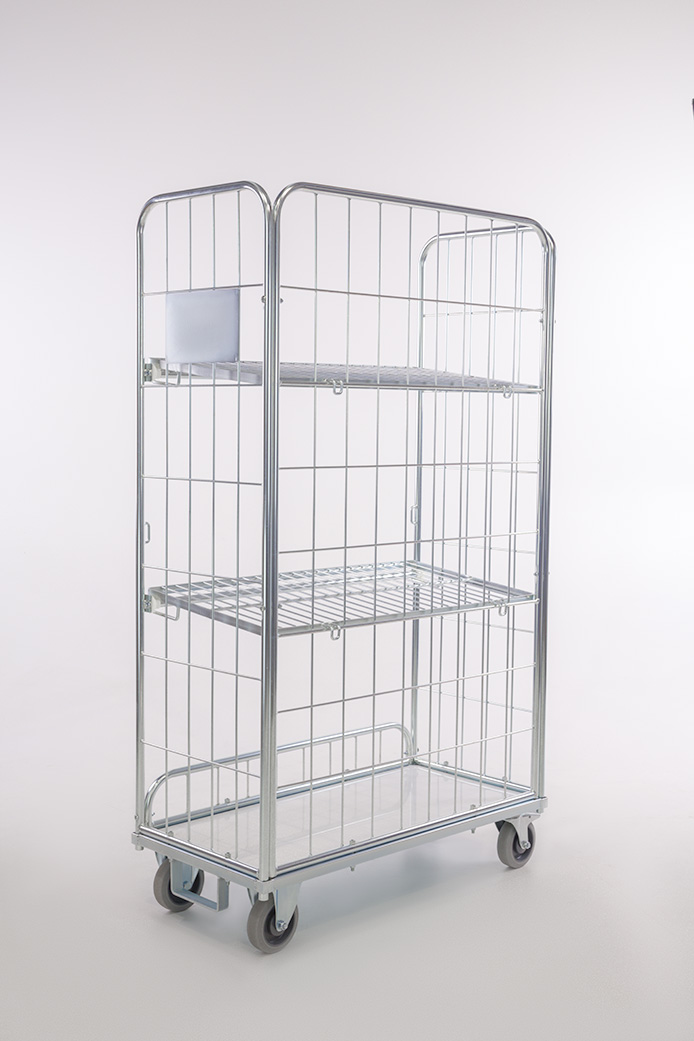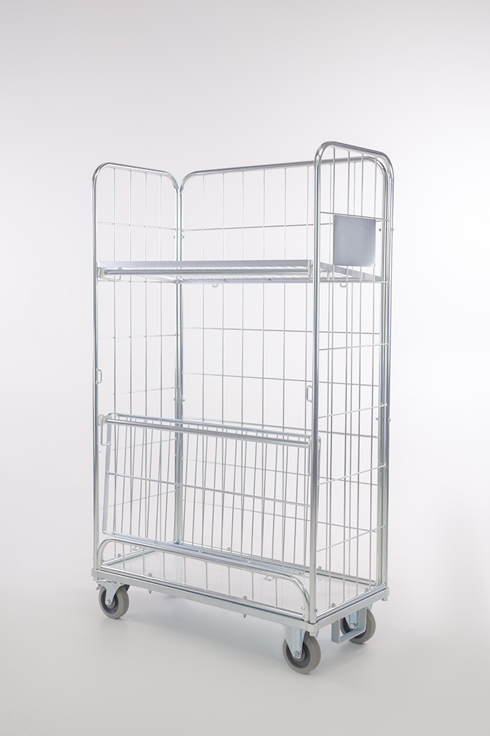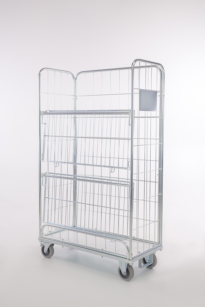 I ripiani non rimovibili sono girevoli e possono essere utilizzati come pareti frontali del container. Di conseguenza, il container è completamente chiuso su tutti quattro i lati.