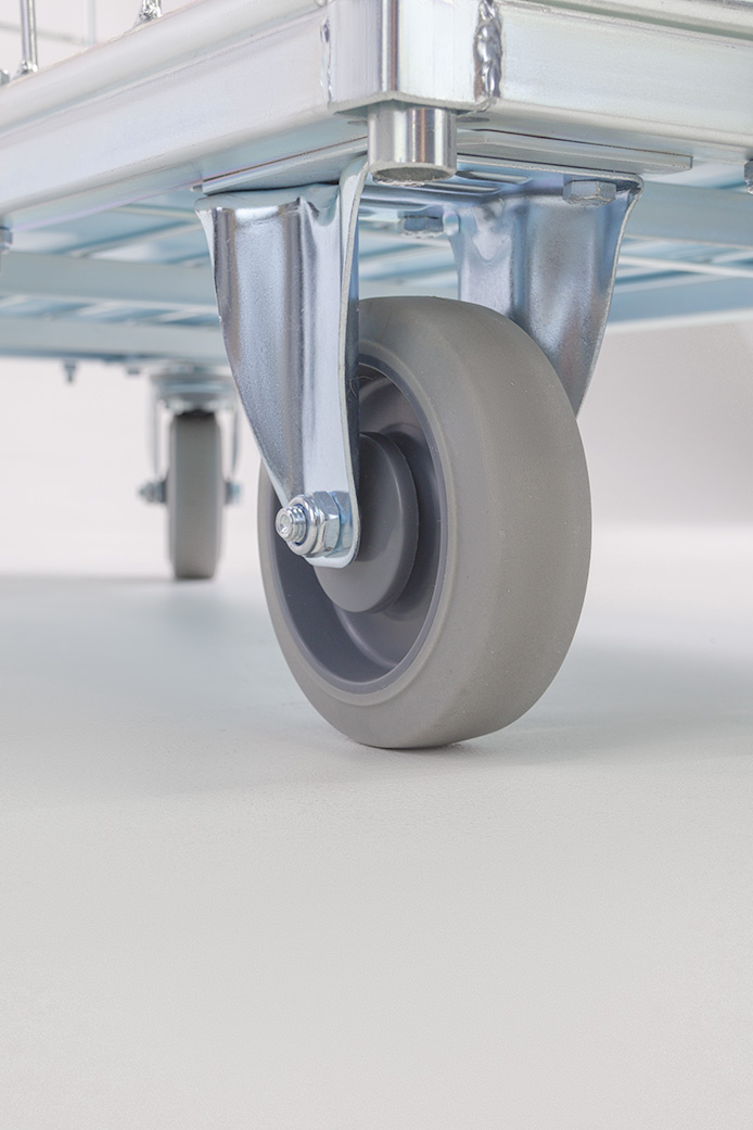 - Ruote ø 125 mm (2 pezzi – girevoli con freno, 2 pezzi – fisse)